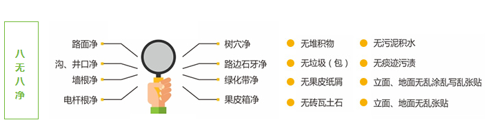 乡镇道路保洁等级按照建设部清扫保洁要求或地方政府及省住建厅标准执行,整体达到“八净八无”或“三无、一规范、一眼净”的工作标准